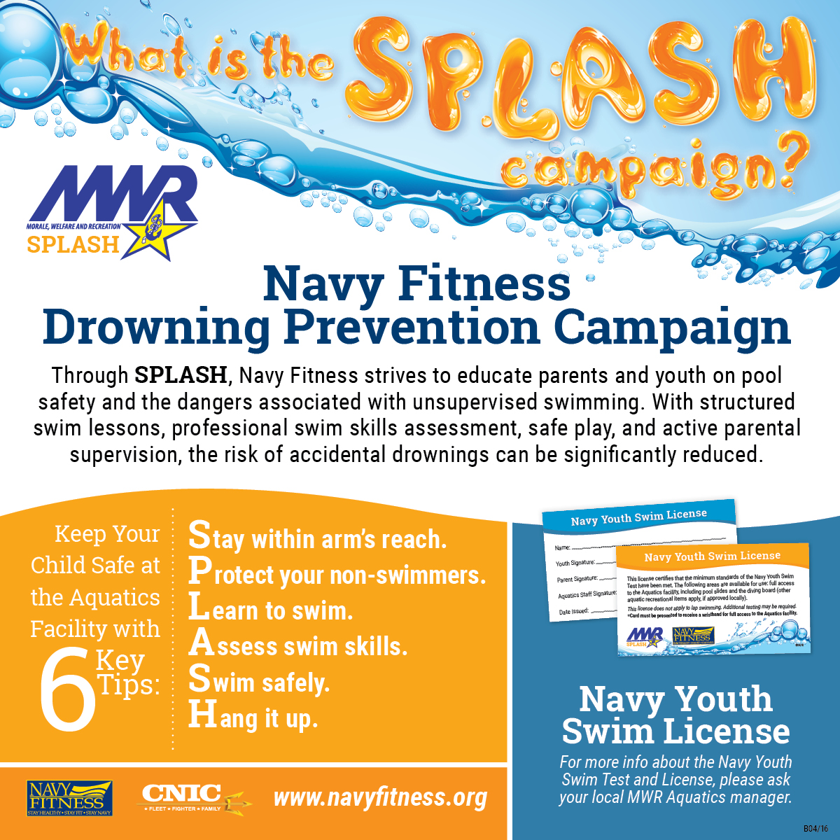 • All children 17 & under must take the Navy Youth Swim Test to swim outside of the non-swimmer zone.
